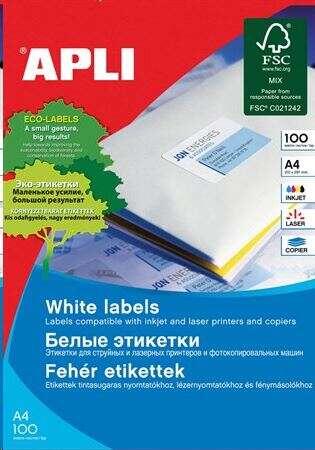 APLI Univerzális Etikett: 4000 db fehér etikett, 105x74 mm ?️ Ezek az APLI univerzális címkék tökéletesek minden nyomtatási feladathoz! Nagy mennyiségben, 4000 db-os kiszerelésben kaphatóak, így mindig kéznél lesznek, amikor szükséged van rájuk. A 105x74 mm-es méret sokoldalúvá teszi őket, alkalmasak számos célra. Főbb jellemzők:4000 db etikett: elegendő mennyiség a legtöbb igény kielégítésére. 105x74 mm méret: univerzális méret, sokféle felhasználási területre alkalmas. Fehér szín: klasszikus és sokoldalú szín, minden nyomtatási feladathoz illik. Univerzális: lézernyomtatókban, fénymásológépekben és tintasugaras nyomtatókban egyaránt használható. FSC tanúsítvánnyal rendelkezik: környezetbarát gyártásból származik ♻️ Ingyenes APLI Soft szoftver: könnyedén tervezhetsz és nyomtathatsz címkéket (www. apli. hu) Műszaki adatok:Tulajdonság LeírásKiszerelés 500 lap/csomagFormátum ÍvesSzín FehérAnyag PapírNyomtató típusa UniverzálisMéret 230x320x85 mmTömeg 4.7 kgAz APLI univerzális címkékkel hatékonyan és egyszerűen szervezheted a dolgaidat! A környezetbarát gyártás és a sokoldalú felhasználhatóság teszi őket ideális választássá.