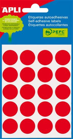 APLI Etikett, 19 mm kör, kézzel írható, színes, APLI, piros, 100 etikett/csomag - toptoner