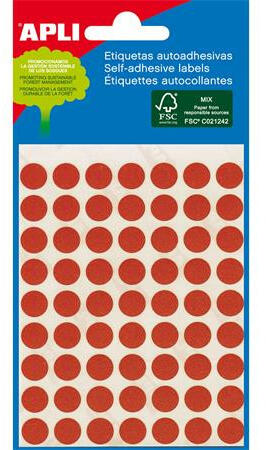 APLI Etikett, 8 mm kör, kézzel írható, színes, APLI, piros, 288 etikett/csomag - toptoner