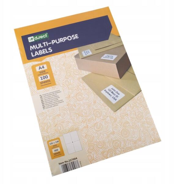 D. rect Öntapadó A4-ES Címkék 4 címke/lap, 105x148mm, 100 lap (227004)