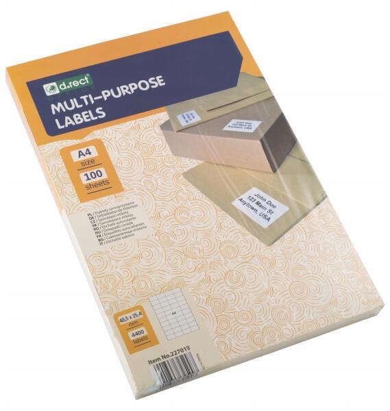 D. rect Öntapadó A4-ES Címkék 4 Címke/lap, 48, 5X25, 4mm, 100 Lap (227019)