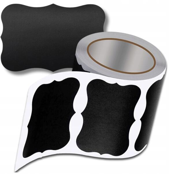 Papír matricák, címkék, 120 db tekercsen, ajándékokhoz, üvegekhez, Diy, feketeALLEGRO